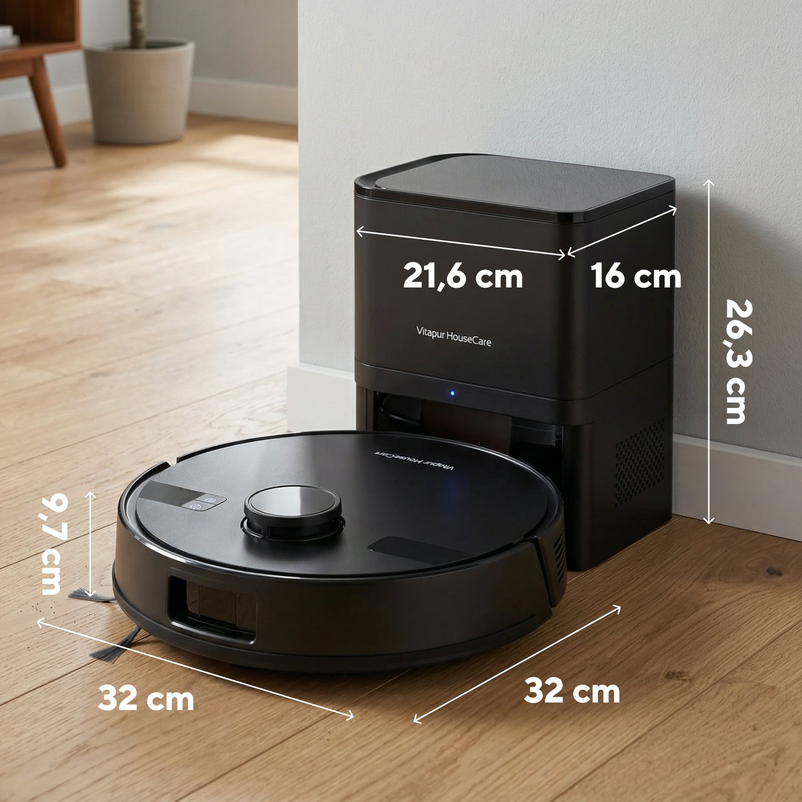 • Dimenzije robotskega sesalnika: 32 x 32 x 9,7 cm
