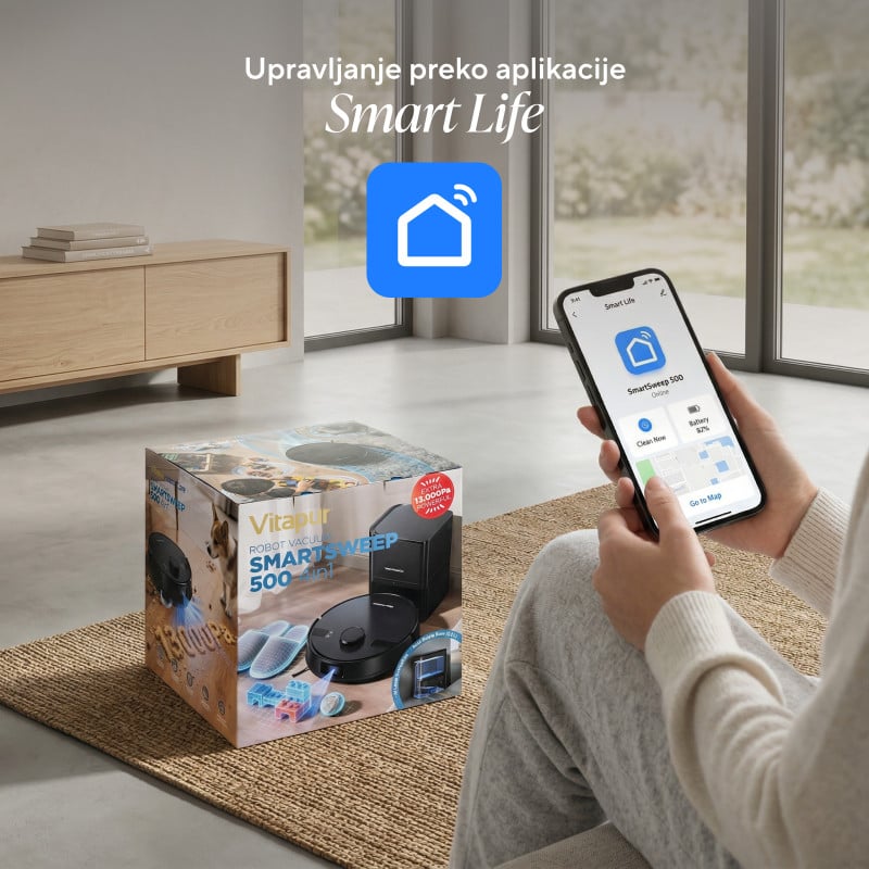 Z aplikacijo Smart Life lahko zaženete sesalnik, nastavite urnike čiščenja ali spremljate napredek. Upravljanje je intuitivno in deluje prek povezave Wi-Fi.