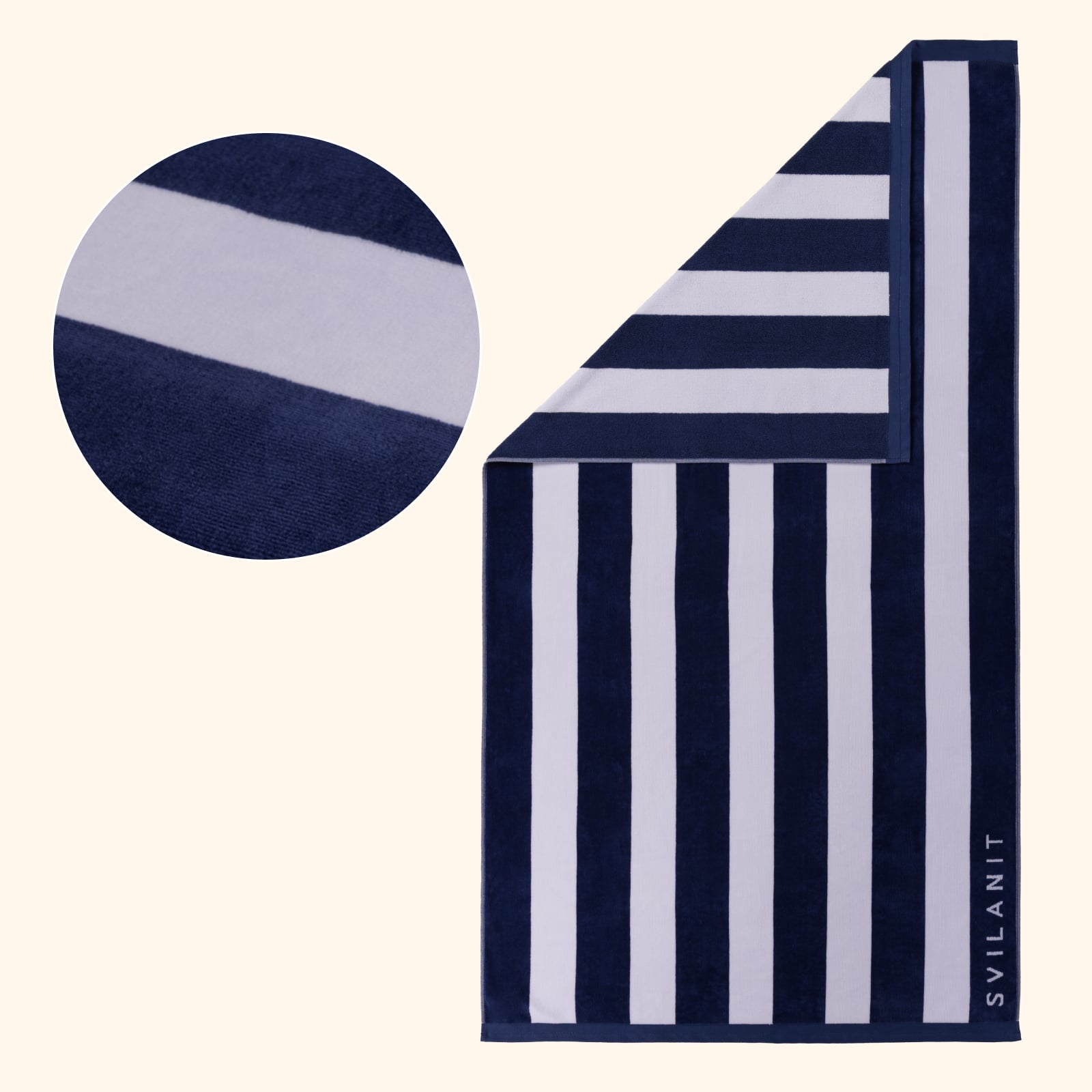 Brisača za plažo Svilanit združuje mehkobo 100 % bombaža, visoko vpojnost in hitro sušenje za popolno udobje po vsakem kopanju. Ustvarjena za brezskrbne trenutke na plaži, ob bazenu, v savni ali ležanje na travi.