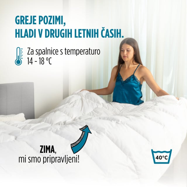 • Tip odeje: zimska, primerna za spalnice s temperaturo med 14–18 °C.