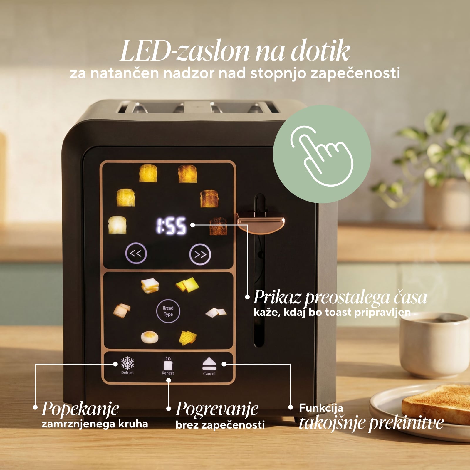 • Digitalni LED-zaslon na dotik omogoča natančen nadzor nad stopnjo zapečenosti