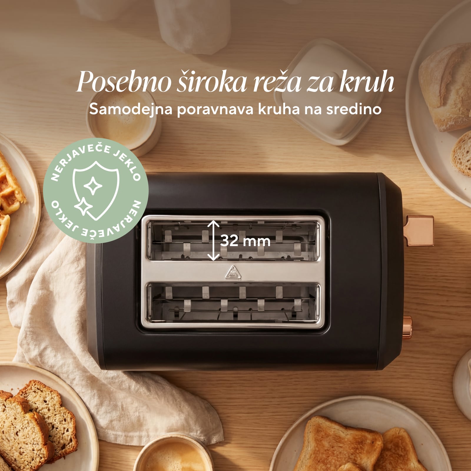 • Posebno široka reža za kruh (32 mm), primerna tudi za debele rezine in žemlje
