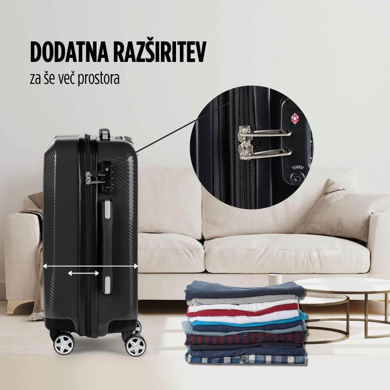 Scandinavia Travel Potovalni kovček Scandinavia Carbon Series – črn, 90 l