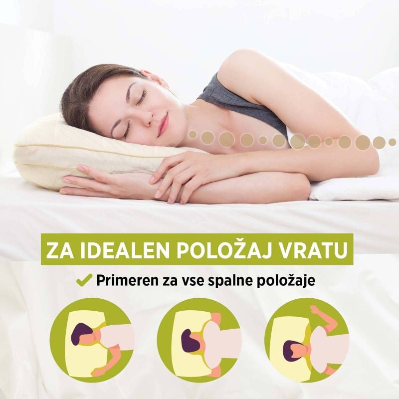 • Primeren za vse spalne položaje: od spanja na hrbtu, boku in tudi trebuhu.