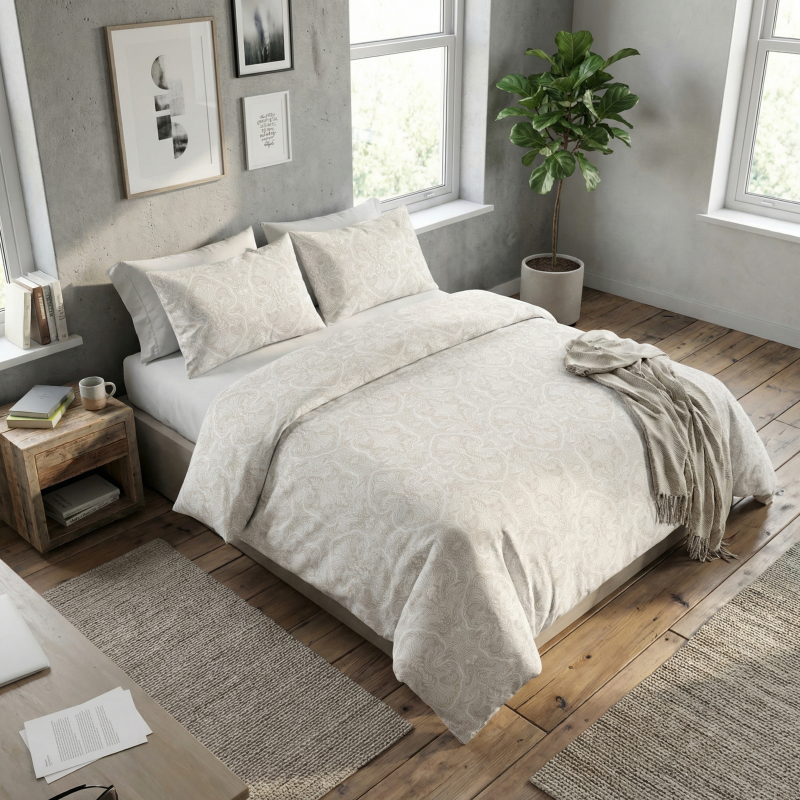 Posteljnina je narejena iz naravnega 100 % bombaža, ki je skrbno obdelan in oblikovan v kakovostno tkanino.
