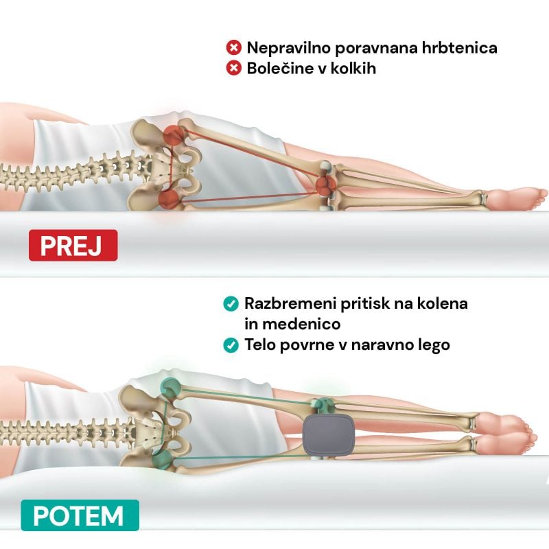 • Ergonomska blazina razbremeni pritisk na kolena in medenico ter telo ohranja v naravni legi.