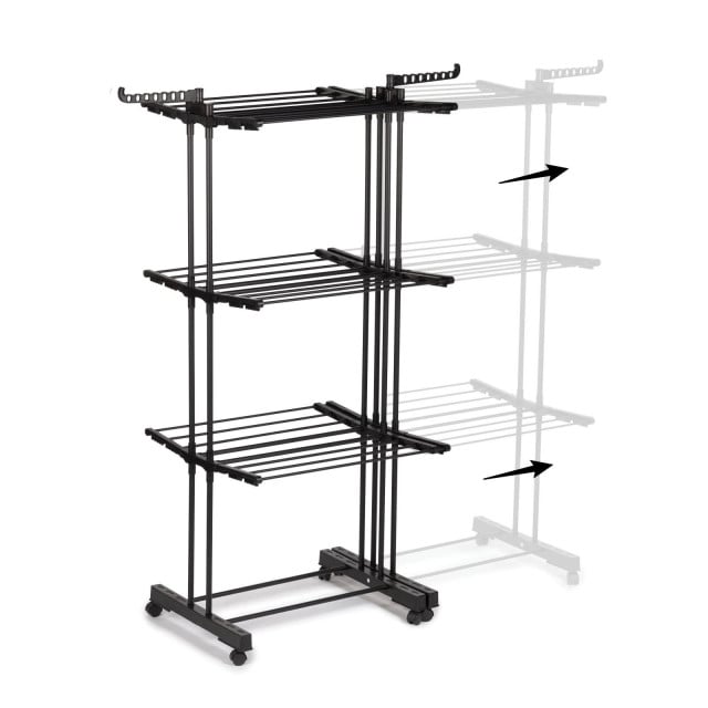 Za posameznike in družine – to inovativno pokončno stojalo ne omogoča le praktičnega sušenja v višino, ampak se tudi raztegne iz enojnega v dvojnega. Tako lahko sušiš manjše količine perila ali pa oblačila vseh članov družine. Poleg tega je sušenje v višino odlična rešitev za manjša stanovanja, da lahko maksimalno izkoristiš prostor, ki je na voljo.