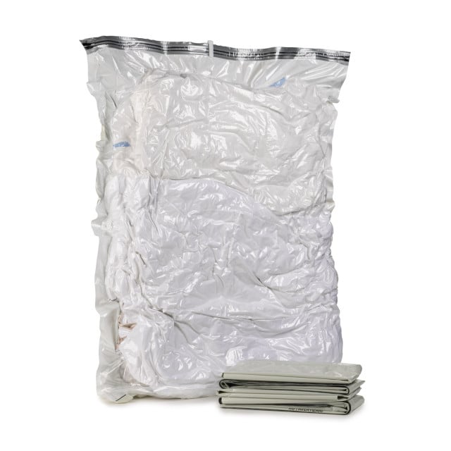 • Vakuumske vreče omogočajo prihranek do 80 % prostora v omari, spalnici ali kovčku.