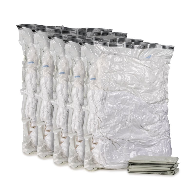 • Pozabite na natrpane omare in prenapolnjene kovčke – pridobite do 80 % več prostora z vakuumskimi vrečami!