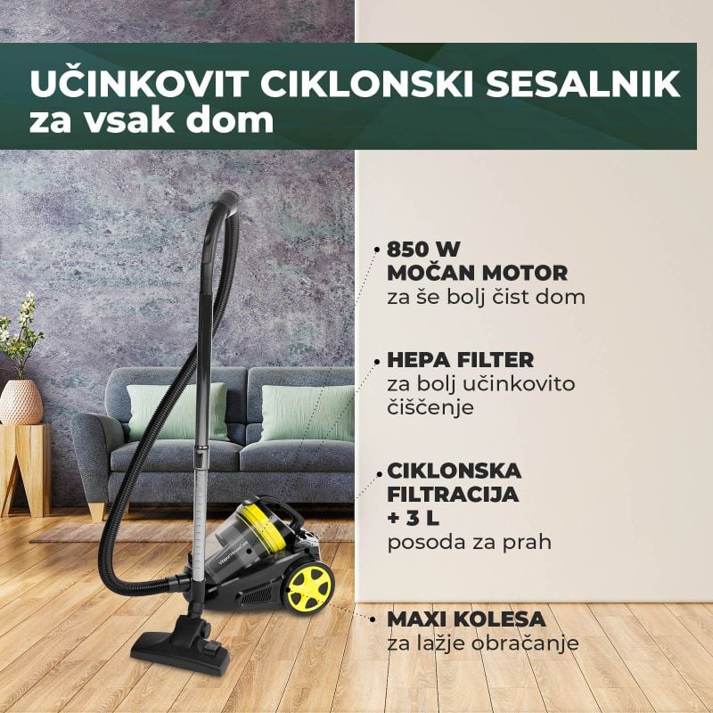 Ciklonski sesalnik StormCyclon je bil posebej razvit za vse, ki si želijo vrhunske natančnosti in enostavne uporabe. Sesaj brez napora po različnih vrstah tal in ga uporabi v vsakem kotičku doma: pod kavčem ali posteljo, na preprogah in pohištvu ali pri sesanju pajčevin.
