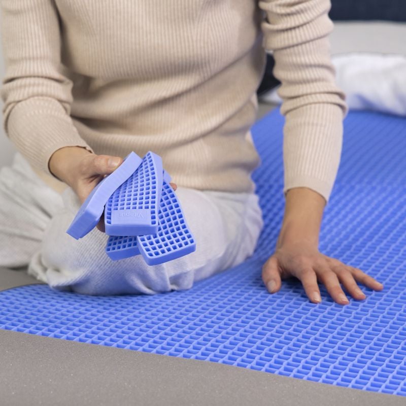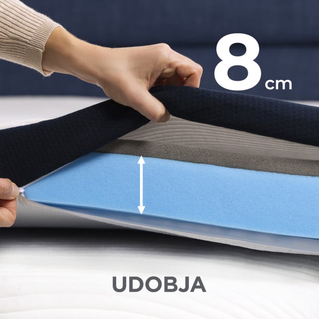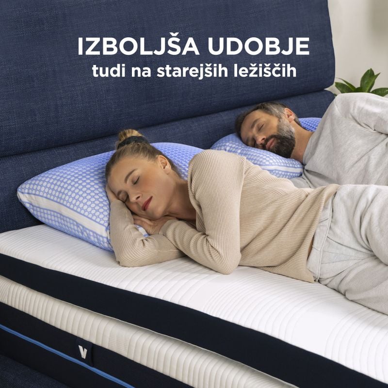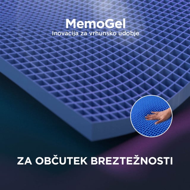 Mehka spominska pena se prilagaja obliki telesa in ohranja hrbtenico ravno, obenem pa razbremeni točke pritiska za spanec brez bolečin. Pena je obdelana z mikroskopskimi kapsulami gela, ki odlično absorbirajo odvečno toploto in jo odvajajo stran od telesa. To dodatno izboljša zračnost nadvložka in zagotavlja prijetno sveže spalno okolje.