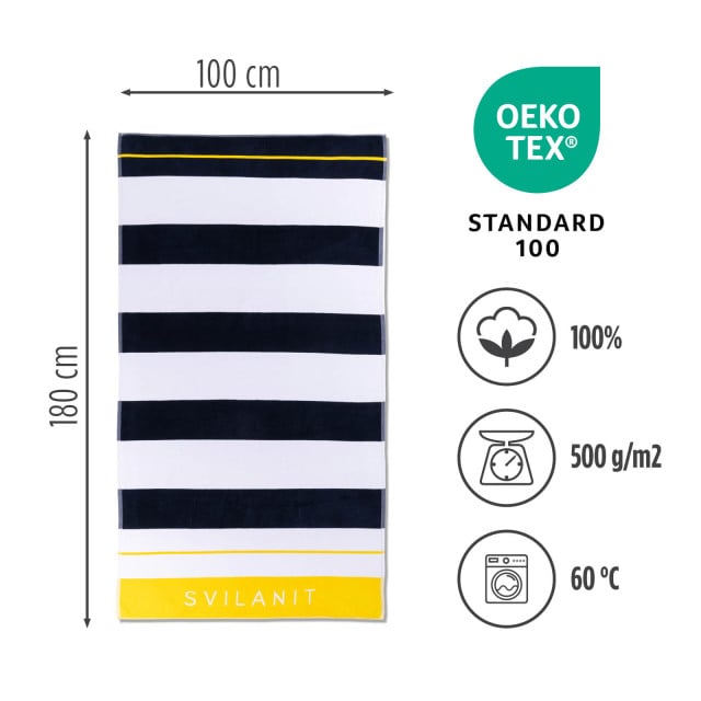 Začutite pravo poletno svobodo s plažno brisačo Svilanit. Velika dimenzija vam nudi razkošen prostor za popolno sprostitev pod soncem ali v prijetni senci. Izjemno mehak in gosto tkan 100 % bombaž zagotavlja vrhunsko vpojnost po vsakem skoku v vodo, medtem ko certifikat OEKO-TEX potrjuje nežnost in varnost za vašo kožo. Izberite svoj najljubši motiv med pestro paleto dizajnov in naj vaša brisača postane izraz vašega edinstvenega sloga. Z največjim veseljem jo razgrnite ob bazenu, vzemite s seboj na piknik ali jo uporabite pri športnih aktivnostih. Po uporabi jo enostavno operite na 60°C in posušite v sušilnem stroju, da bo vaša najljubša brisača vedno pripravljena za naslednjo pustolovščino.