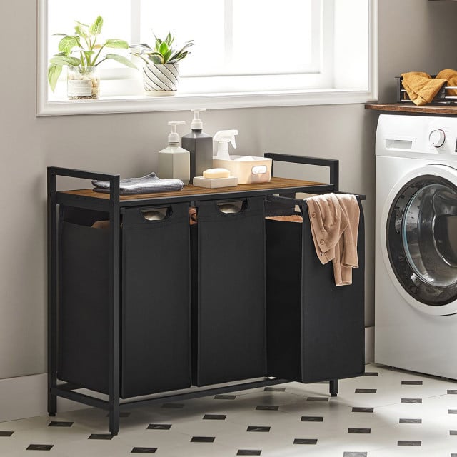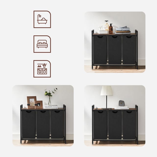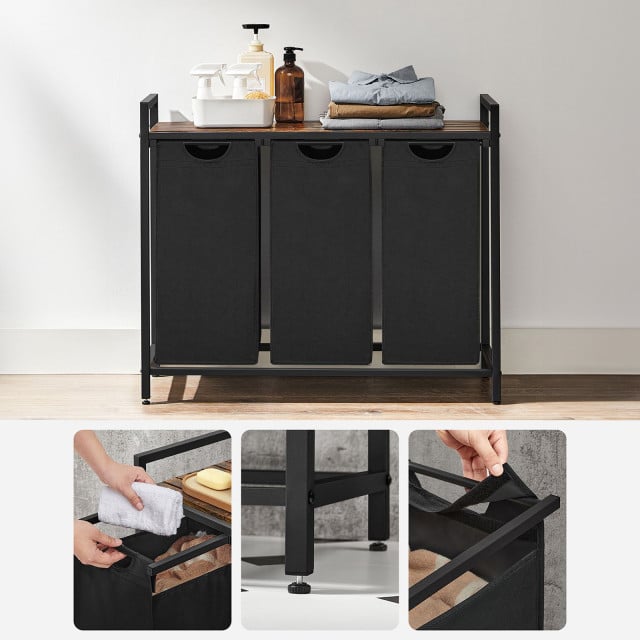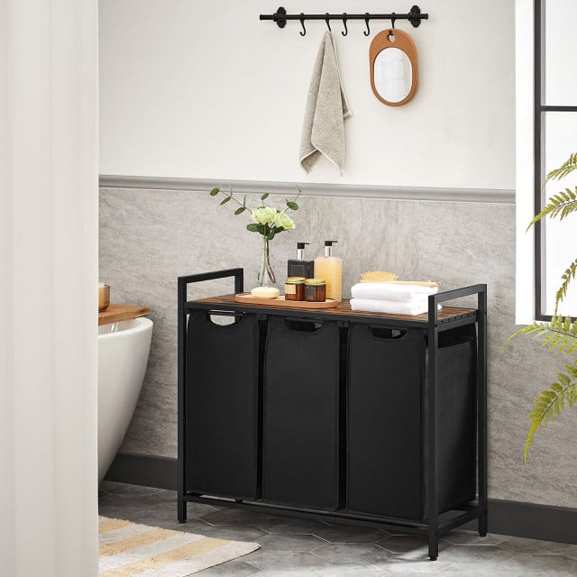 Koš za perilo Songmics Ila Trio – 3 x 38 L, črn