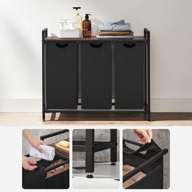 Rosmarino Koš za perilo Songmics Ila Trio – 3 x 38 L, črn