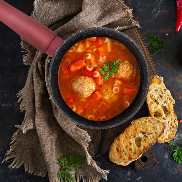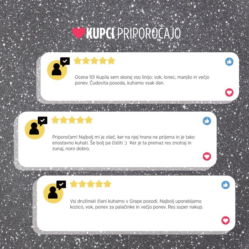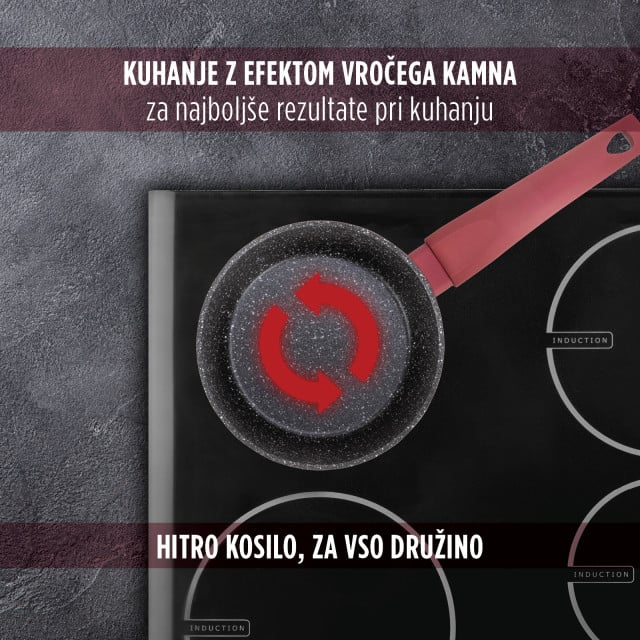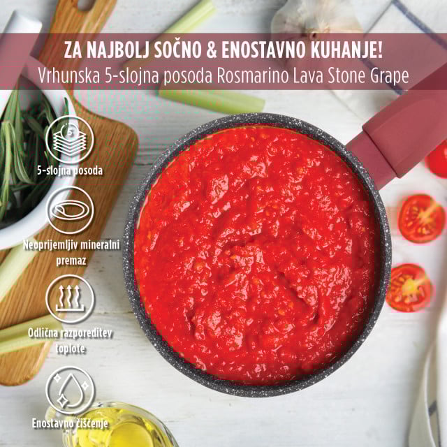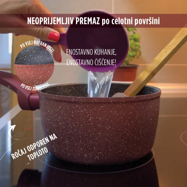 Zgornja plast mineralnega premaza poskrbi za neoprijemanje hrane na posodo, hitro kuhanje in enostavno vzdrževanje.