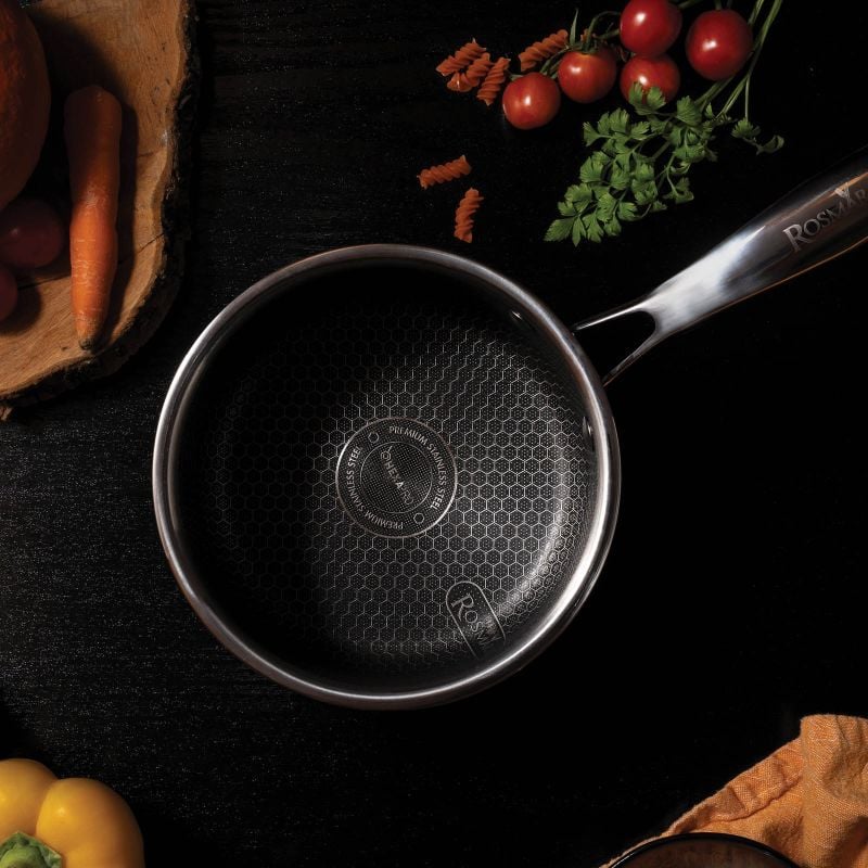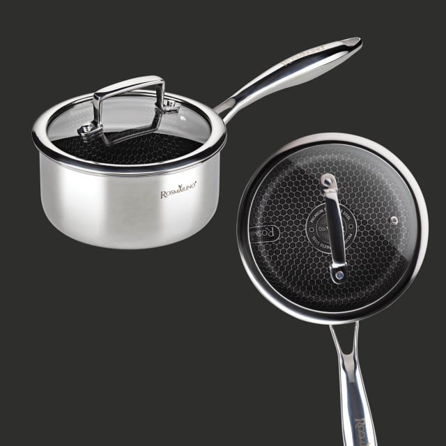 Linija premium posode Rosmarino HexaPRO je prava izbira za tiste, ki želite doseči profesionalne rezultate pri kuhanju. S svojo izjemno vzdržljivostjo in napredno hibridno tehnologijo poskrbi za popolno enakomerno kuhane jedi. Odlikuje jo premium neuničljiv premaz, ki je odporen proti praskam. Brez kompromisov jo lahko uporabljaš na vseh vrstah kuhalnih plošč in tudi v pečici vse do 220 °C. To je premium posoda, ki tvoje kuharske veščine dvigne na višjo raven. Kozica je vsestranska za pripravo manjše količine hrane, v njej je možno ustvarjati slastne omake, poširati jajca, skuhati jušno osnovo ali puding, pogreti mleko, vodo in še mnogo več.