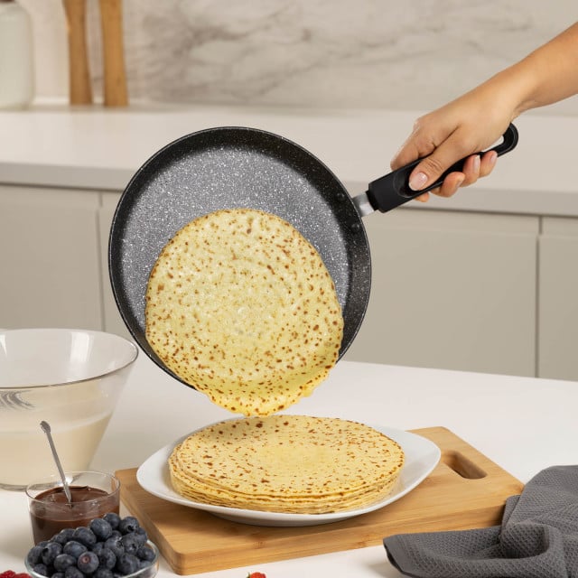 • Ponev za palačinke s premerom 25 cm iz vzdržljivega kovanega aluminija.
