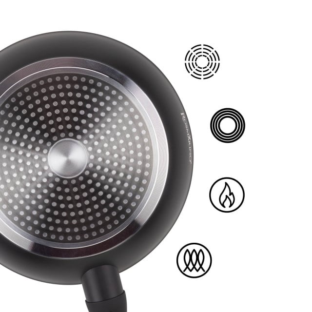 • 4-slojna sestava s 3 zaščitnimi premazi omogoča hitro, učinkovito in enakomerno segrevanje posode, kar prihrani čas in energijo pri pripravi obrokov.