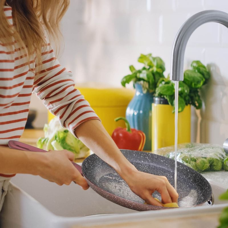 Zgornja plast mineralnega premaza poskrbi za neoprijemanje hrane na posodo, hitro kuhanje in enostavno vzdrževanje.