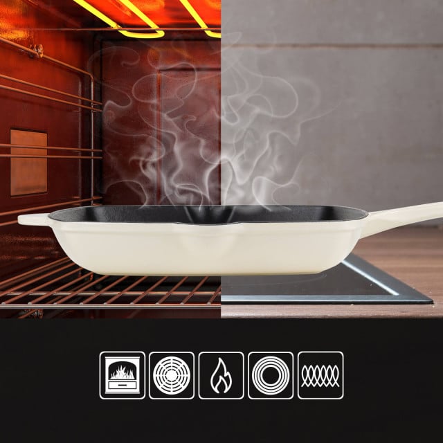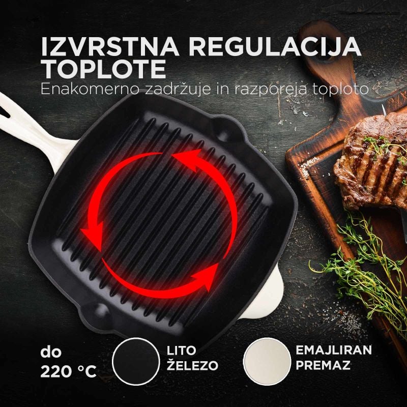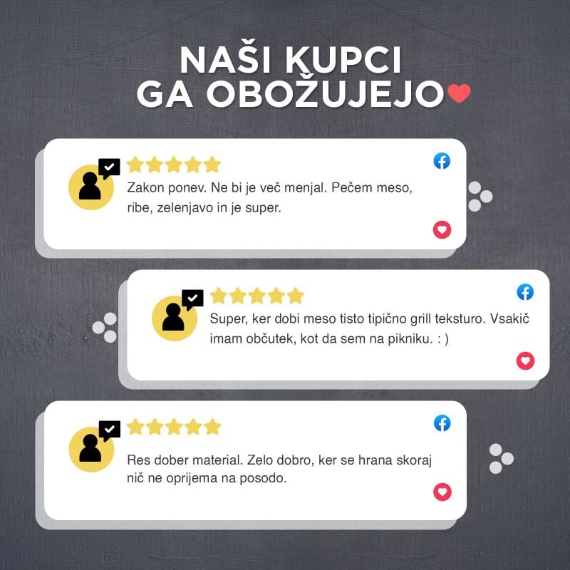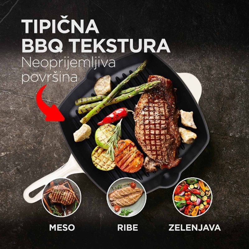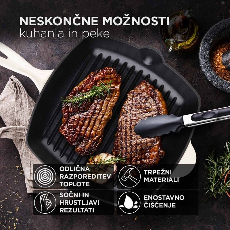 Vsi ljubitelji piknikov, pozor. Ta ponev navduši s svojim tipičnim "gril" vzorcem na vsaki sestavini, ki jo pripravljaš. Od sočnih rib, mesa pa vse do koščkov sveže pečene zelenjave."