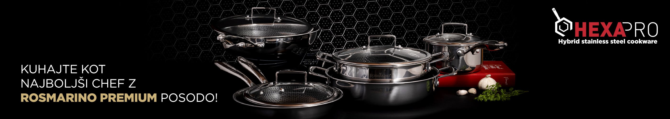 5-delni set posode Rosmarino HexaPro je prava izbira za tiste, ki želite doseči profesionalne rezultate pri kuhanju. S svojo izjemno vzdržljivostjo in napredno hibridno tehnologijo poskrbi za popolno enakomerno kuhane jedi. Odlikuje jo premium neuničljiv premaz, ki je odporen proti praskam. Brez kompromisov jo lahko uporabljaš na vseh vrstah kuh... -
