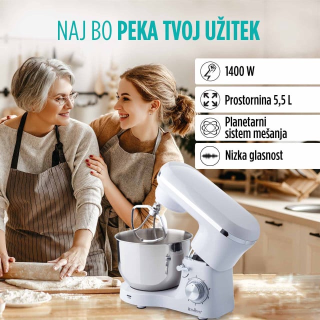 • Kuhinjski robot (1400 W) za pripravo sladic in raznovrstnega testa.