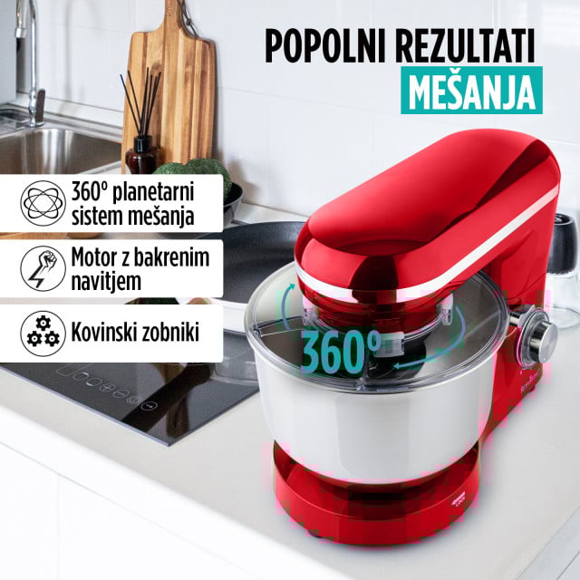 Prihrani čas pri vsaki peki in kuhanju in spoznaj kuhinjskega robota, ki bo tvoj novi pomočnik v kuhinji. 1400 W motor bo nepogrešljiv pri peki vseh piškotov, sladic, pripravi testa za kruh, pico in stepanje popolne smetane.