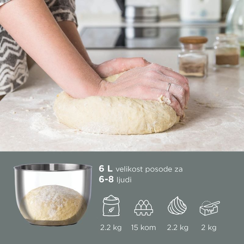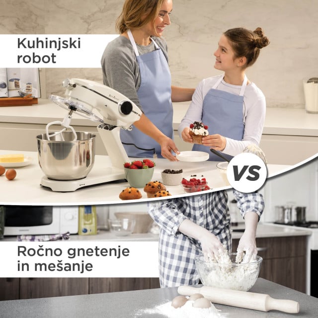 Zvest in vzdržljiv pomočnik je v kuhinji nepogrešljiv, zato je ohišje kuhinjskega robota Elite v celoti izdelano iz kakovostnega litega aluminija. V primerjavi z običajno plastičnimi aparati je kuhinjski robot Rosmarino Elite trpežnejši in omogoča dolgoletno uporabo. Aluminijasto ohišje se ponaša tudi z dovršenim, elegantnim videzom, zato bo aparat zagotovo pritegnil poglede v tvoji kuhinji. Ta kuhinjski robot zlahka opravi tudi najzahtevnejše naloge in ti bo zvesto služil na dolgi rok.