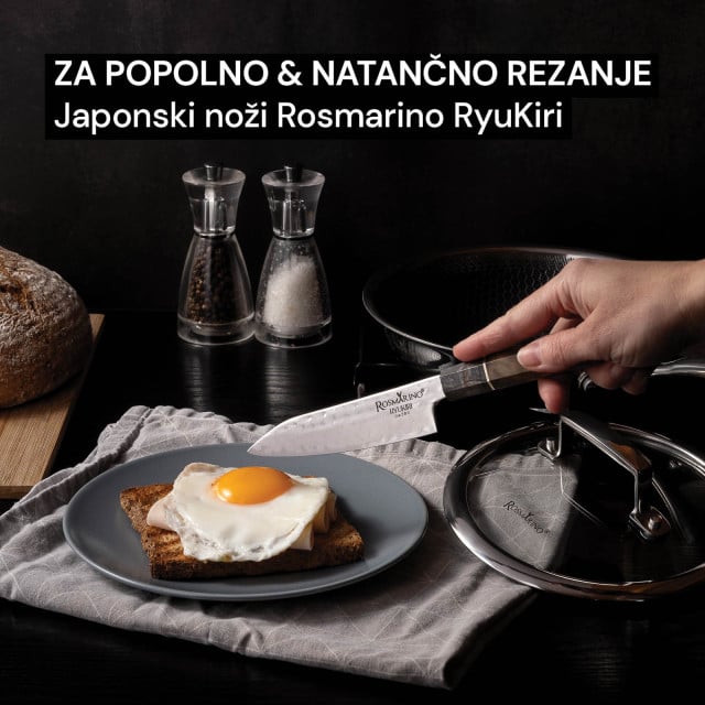 Rosmarino japonski kuhinjski nož je popolna izbira tako za kuharske mojstre kot tudi za začetnike, saj je izjemno vzdržljiv in vrhunske kakovosti. Z debelino rezila le 2 mm ta kuhinjski nož omogoča izjemno natančno rezanje, kar je ključno pri pripravi različnih jedi. Zaradi klasične japonske oblike ročaja lahko doživiš kulinarične podvige kot pravi kuharski mojster.