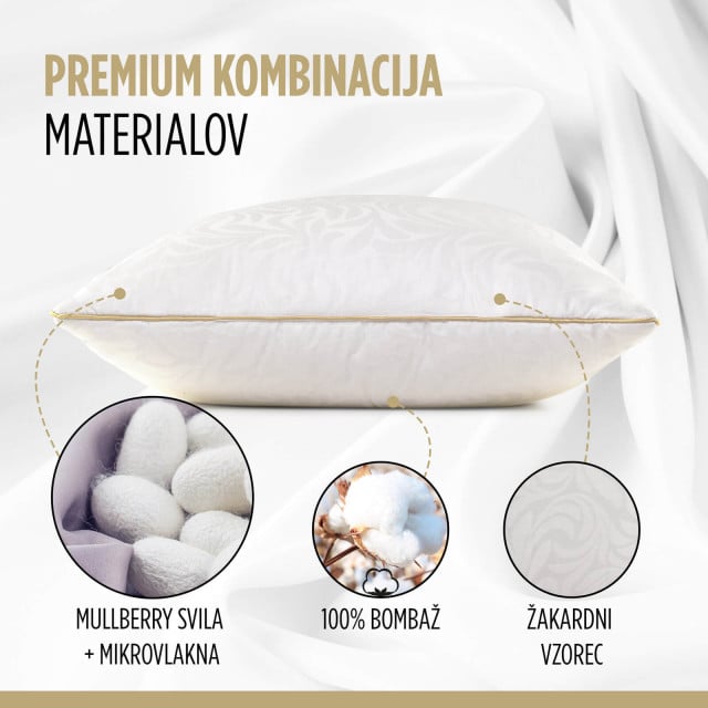 Prevleka vzglavnika je izdelana iz gosto tkanega bombaža, ki vas bo razvajal s prijetnim občutkom in izjemno zračnostjo. Za bombažna vlakna je značilna izjemna vpojnost, odvajanje vlage in preprosto vzdrževanje. - Polnilo prevleke: naravna mulberry svila