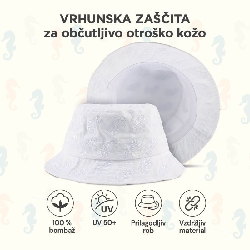 Otroška koža je še posebej občutljiva na sončne žarke, zato klobuki Seahorse zagotavljajo učinkovito zaščito UV 50+. Otroci lahko brezskrbno uživajo v igri na plaži, v parku ali na vrtu, medtem ko so njihova koža in oči učinkovito zaščitene pred škodljivimi UV-žarki.