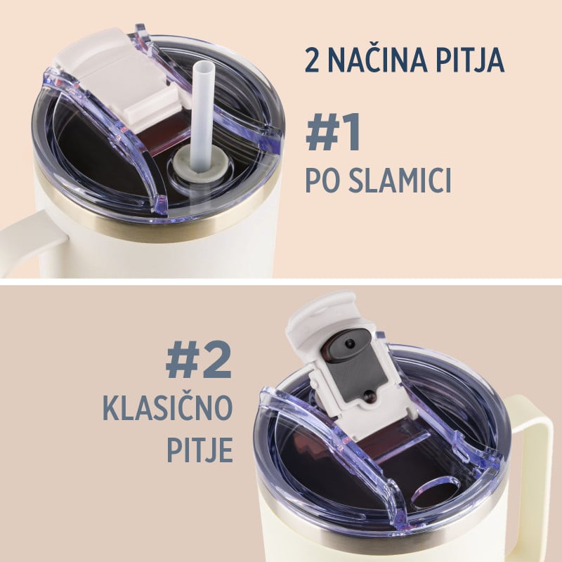 • Praktičen pokrov s slamico omogoča brezskrbno pitje, kamor koli vas zanese pot.