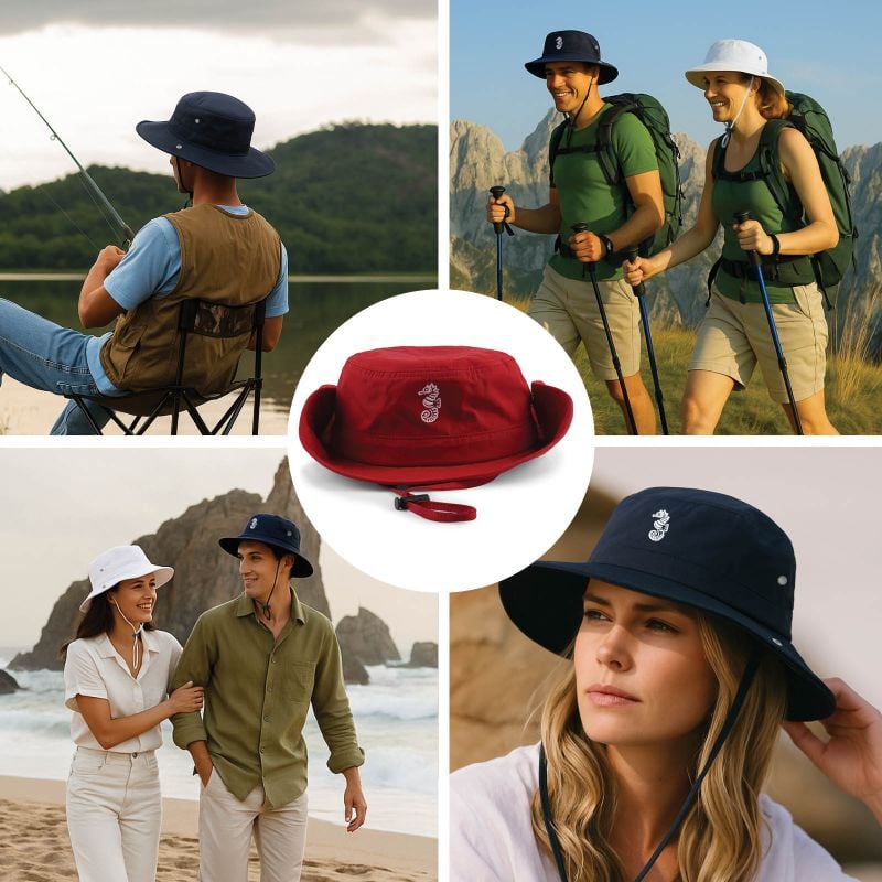 Klobuk Seahorse s svojo zaščito UV 50+ učinkovito blokira škodljive sončne žarke tudi med celodnevnimi aktivnostmi na prostem. Širok in mehak rob optimalno zasenči obraz, vrat in ušesa, da ostanete celovito zaščiteni, tudi ko sonce doseže najvišjo točko.