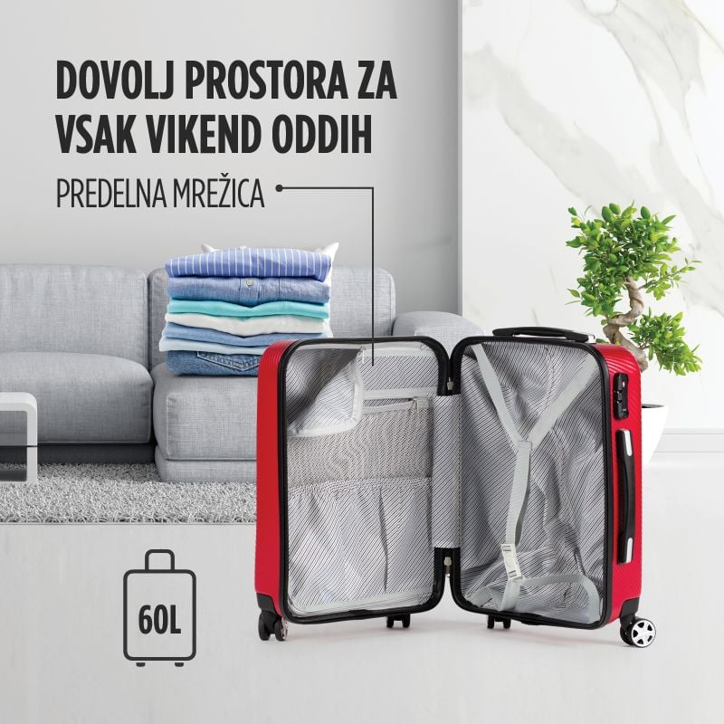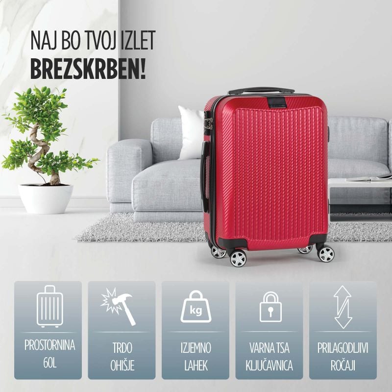 Potovalni kovček Scandinavia Carbon Series - rdeč, 60 l