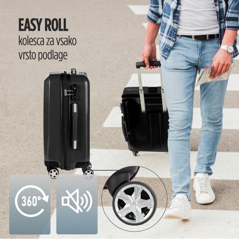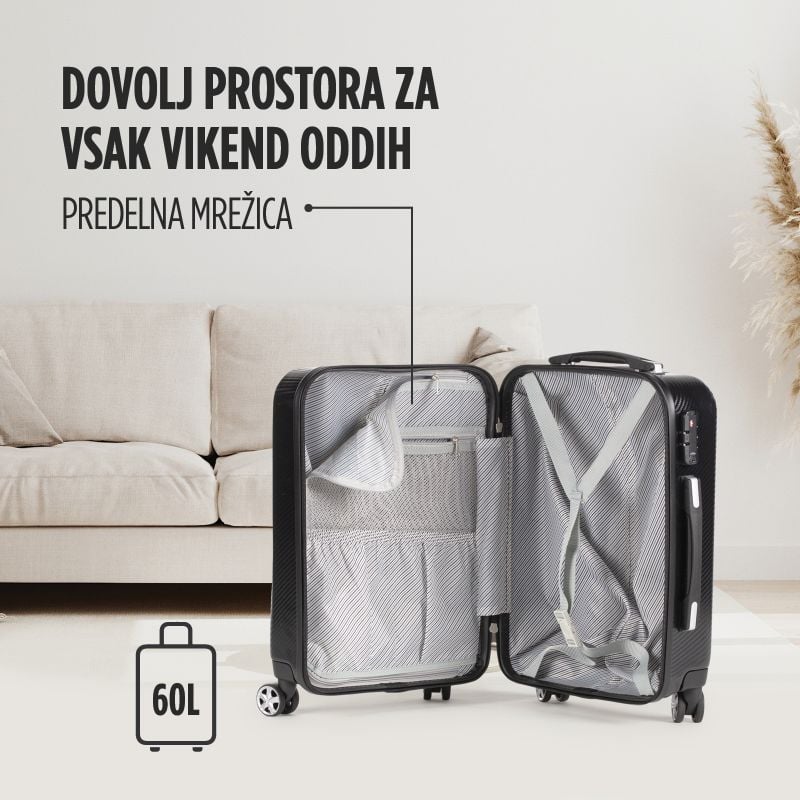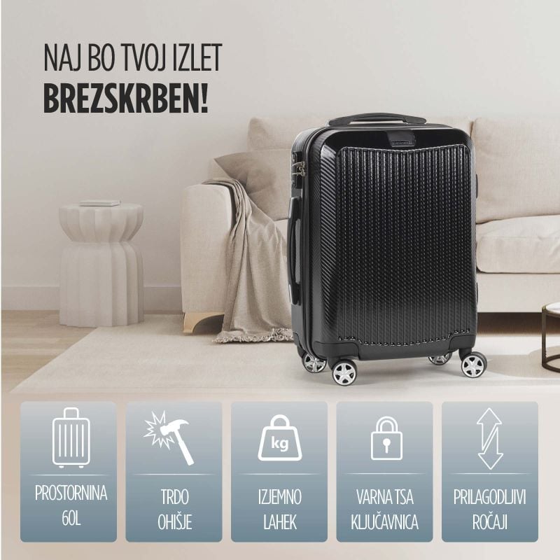 Scandinavia Travel Potovalni kovček Scandinavia Carbon Series - črn, 60 l