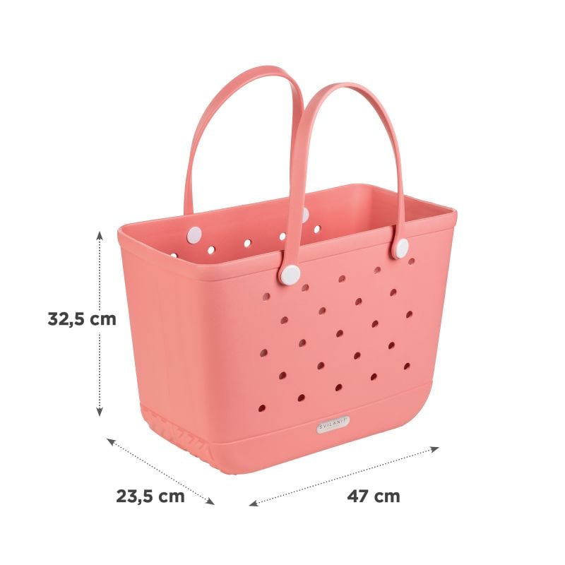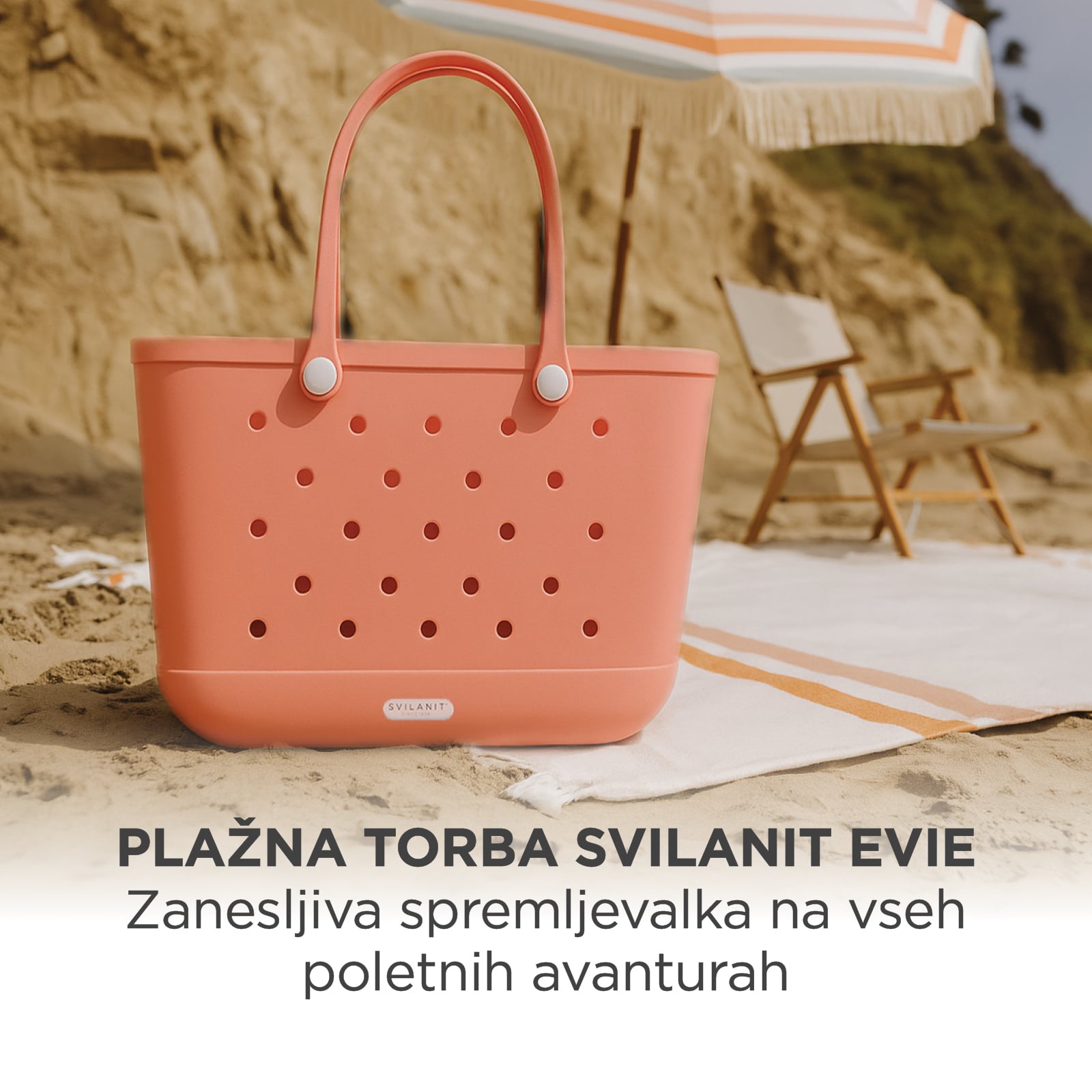 Spoznajte Evie – vašo popolno spremljevalko za brezskrbne dni na plaži. Ta vsestranska torba iz trpežne pene EVA poskrbi, da vse vaše stvari ostanejo suhe in varno shranjene, hkrati pa s svojo sodobno obliko in živahno barvo poudari vaš osebni slog. Z dovolj prostora za brisače, kreme za sončenje, knjige in prigrizke je torba Evie zasnovana za popolno sprostitev na plaži, ob bazenu ali na izletih v naravo. Njeno vodoodporno površino lahko enostavno očistite z vodo, zaradi luknjičaste zasnove pa enostavno odstranite tudi pesek. V notranjosti se skriva žep z zadrgo za shranjevanje vaših dragocenosti. Torba Evie je popolna kombinacija uporabnosti in elegance za vse, ki cenijo svobodo in uživanje brez skrbi. Z njo vsak sončen dan postane nepozabna avantura, polna udobja in sloga.
