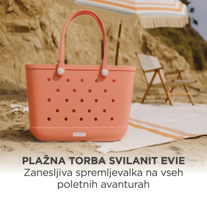 Torba Evie je zasnovana z mislijo na brezskrbne in smeha polne poletne dni. S svojo edinstveno obliko doda kanček zabave prav vsakemu poletnemu dnevu. Na voljo je v dveh barvah – roza in modri, ki čudovito dopolnita prav vsak poletni videz in pritegneta pozornost mimoidočih. Zaradi trpežnega materiala ohrani svoj svež videz tudi po intenzivni uporabi v več poletnih sezonah.