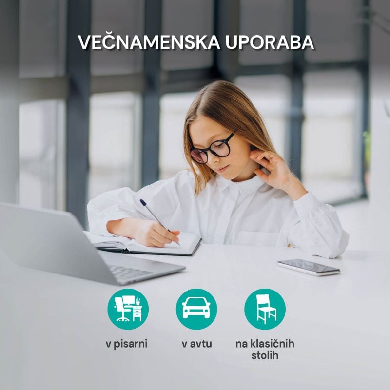 • Vsestranska uporaba na pisarniških stolih, avtomobilskih sedežih in drugih površinah.
