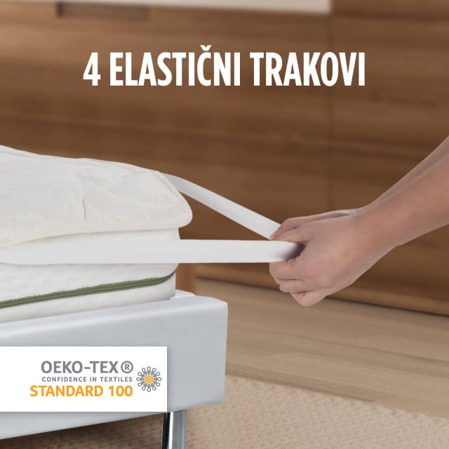 Tvoja zaščita za ležišče bo vedno ostala na svojem mestu. 4 elastični trakovi za enostavno nameščanje se odlično oprimejo robov tvojega ležišča.