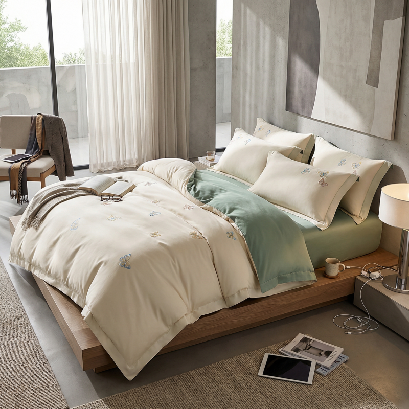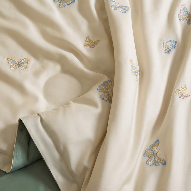 Svilanit PREMIUM vezena bombažno-satenasta posteljnina Butterfly Garden – prestižna kakovost egipčanskega bombaža