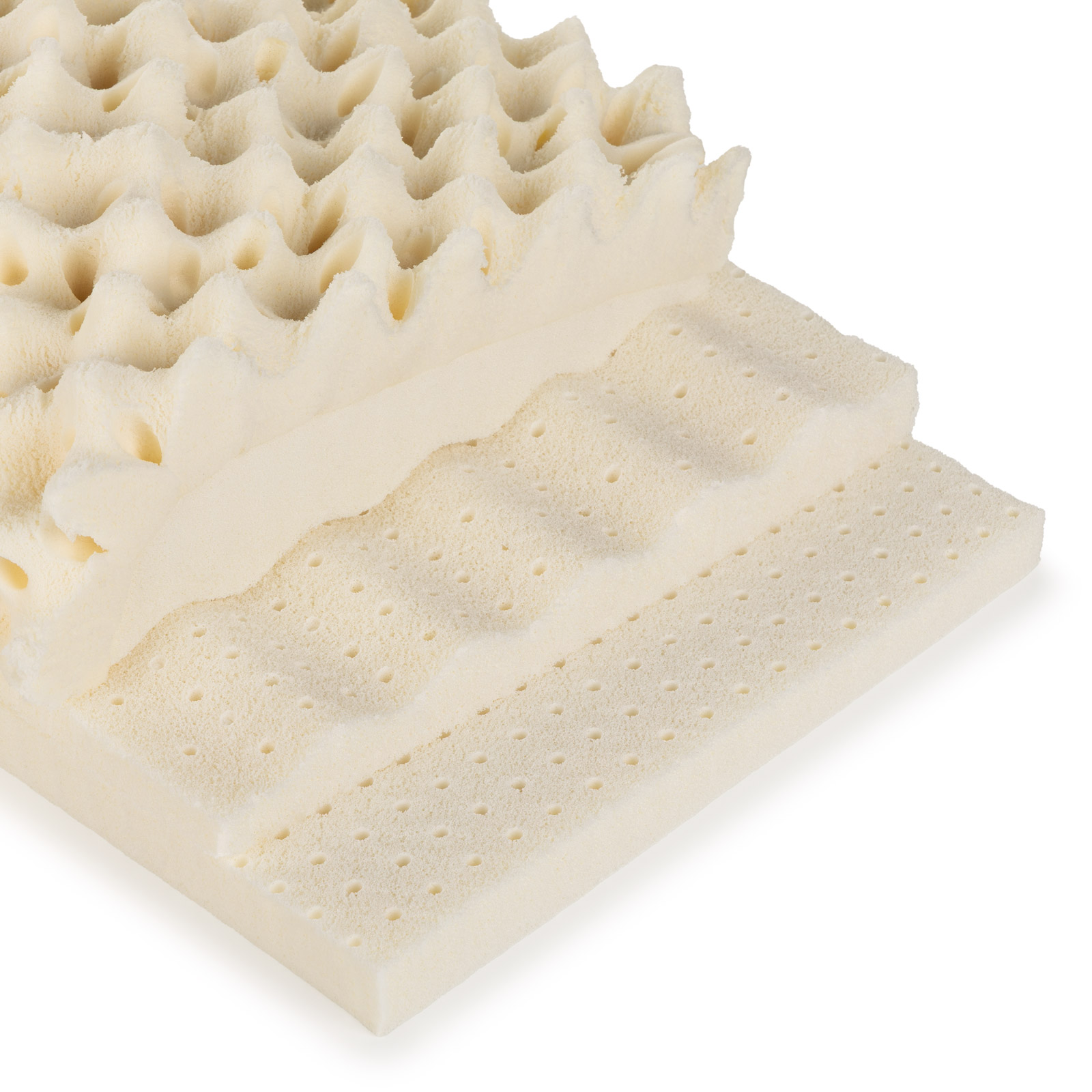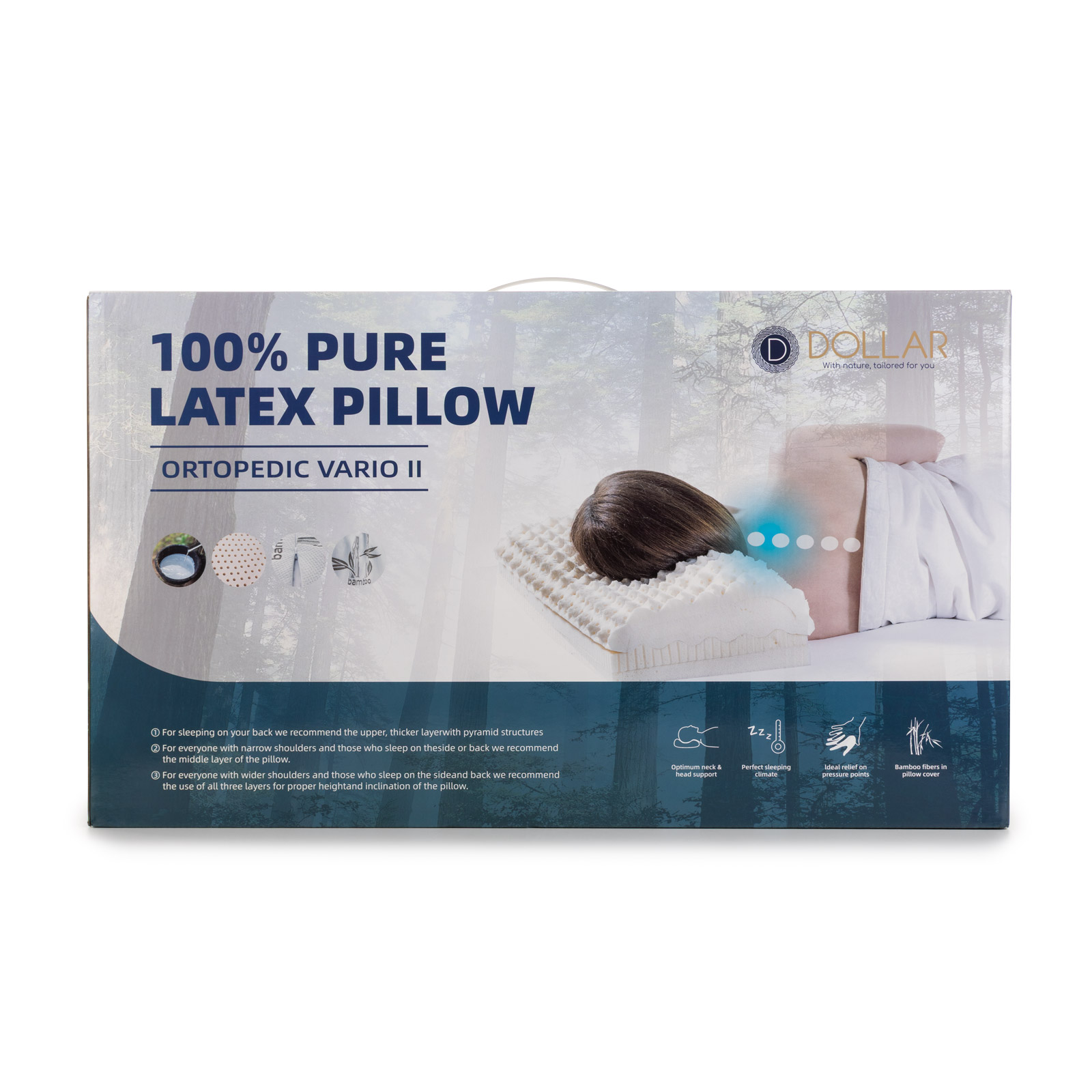 Anatomski vzglavnik iz lateksa Ortopedic Vario II je popoln ergonomski vzglavnik za vse, ki si želite zmanjšati bolečine v vratu in poskrbeti za ortopedsko podporo pri spanju. Jutra brez bolečin omogočajo najbolj prilagodljivi sloji, ki jih lahko odvzemate. Piramidna struktura nudi še dodaten masažni občutek. Lateks velja za premium material z odlično prožnostjo, kar je idealno za vaš položaj hrbtenice, hkrati pa je tudi eden izmed bolj vzdržljivih materialov v svetu vzglavnikov. Na njem vam ne bo nikoli vroče, saj nudi boljši pretok zraka in zmanjša nočno potenje. Anatomska oblika vzglavnika sprosti vrat in ramena, kot nalašč za ljubitelje spanja na boku ali hrbtu.