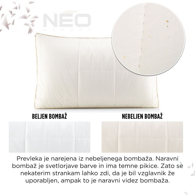 Zunanja prevleka vzglavnika je izdelana iz gosto tkanega 100 % bombaža, ki vas bo razvajal z izjemno zračnostjo. Idealno za ljubitelje naravnih materialov. - Polnilo zunanje prevleke