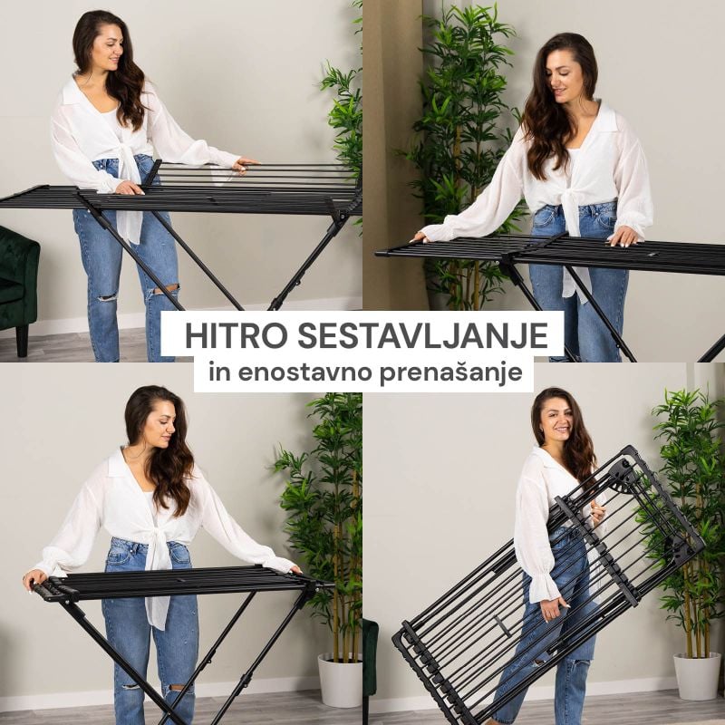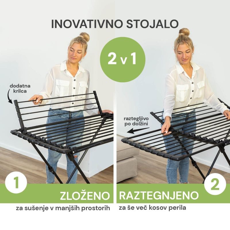 Raztegljivo po dolžini + stranski krili za sušenje. Popolna prilagodljivost.