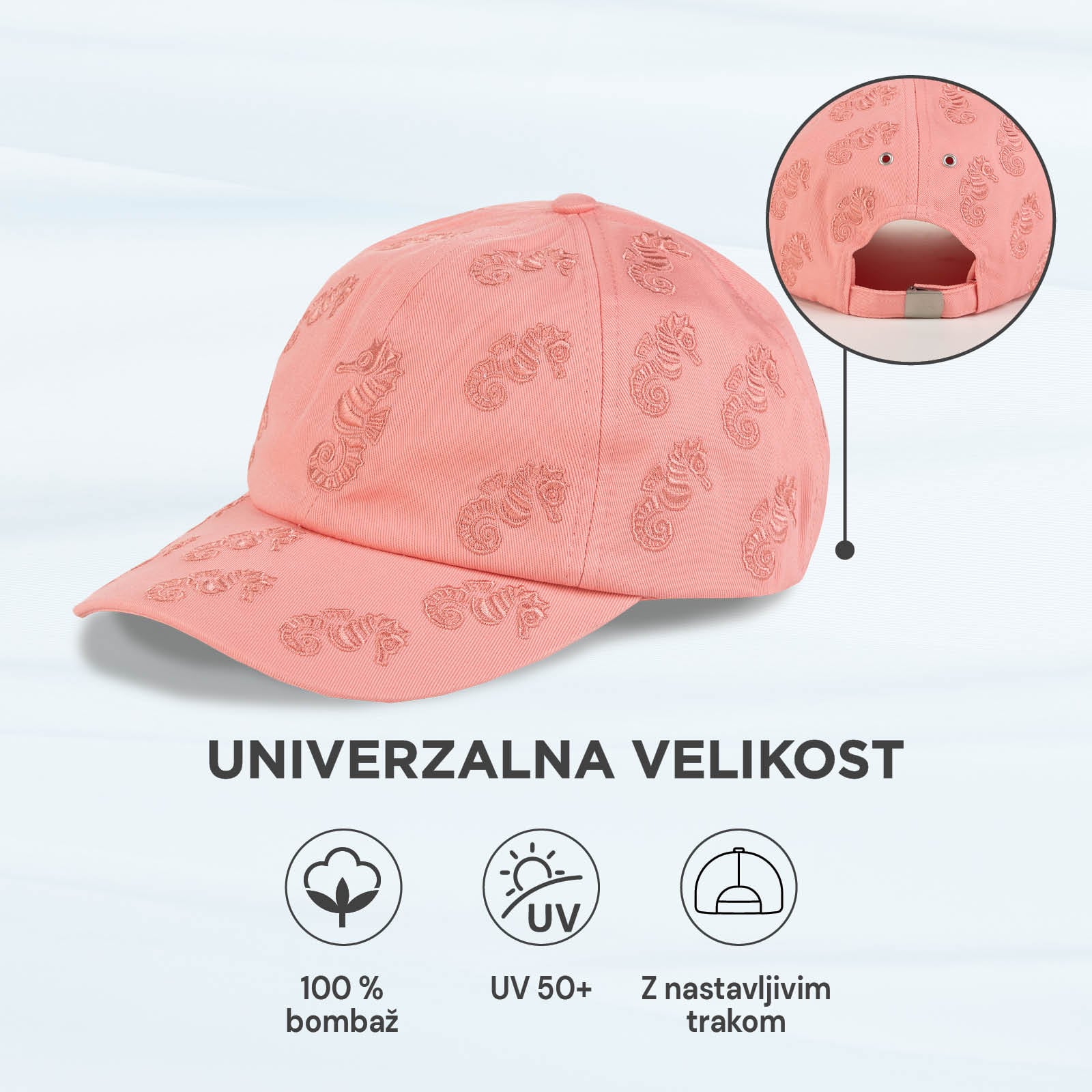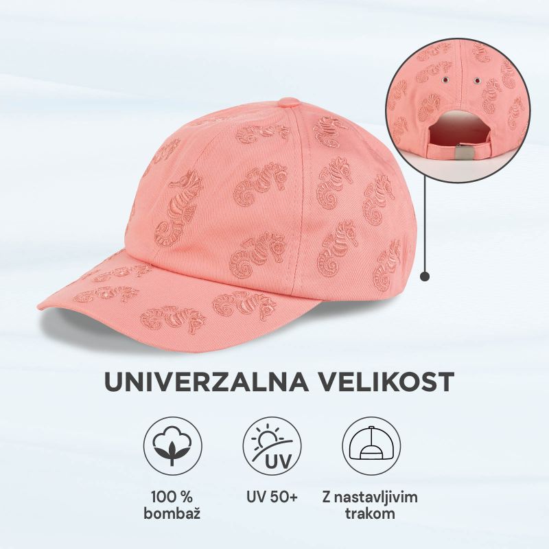 Dopolnite svojo poletno garderobo s kapo s šiltom Svilanit Solaris, ki združuje sproščeno eleganco, udobje in zaščito pred soncem. Kapa je izdelana iz 100 % bombaža, ki omogoča optimalno kroženje zraka za občutek svežine ves dan. S svojo visoko zaščito UV 50+ in optimalno dolžino šilta učinkovito zaščiti obraz in kožo pred škodljivimi sončnimi žarki. Posebnost linije Solaris je vezen motiv morskega konjička po celotni zunanji površini, ki črpa navdih iz morskega življenja in brezčasnega mediteranskega šarma. Zaradi nastavljivega traku se kapa lepo poda praktično vsem. Idealna spremljevalka za vse poletne dogodivščine – od plaže do mestnih ulic.