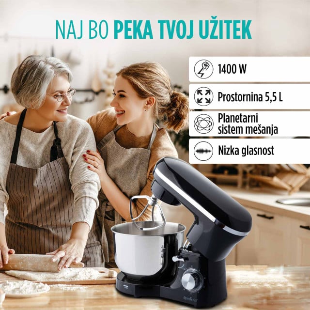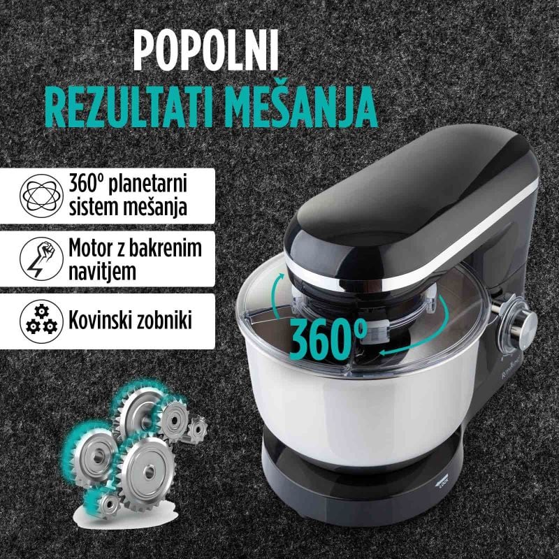Prihrani čas pri vsaki peki in kuhanju in spoznaj kuhinjskega robota, ki bo tvoj novi pomočnik v kuhinji. 1400 W motor bo nepogrešljiv pri peki vseh piškotov, sladic, pripravi testa za kruh, pico in stepanje popolne smetane.