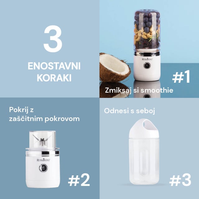 - Prenosni blender Rosmarino NutriMax 2 GO, svetlo moder