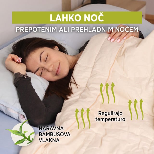 Naravna bambusova vlakna odlično absorbirajo vlago in s tem vaš spalni prostor ohranjajo vedno suh. Za voluminoznost so polnilu dodana napredna mikrovlakna, ki zagotavljajo dolgotrajno udobje.