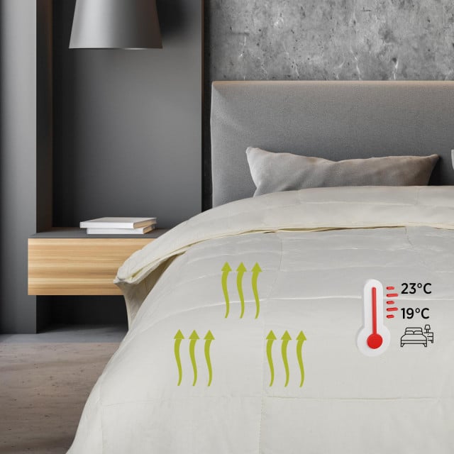 Prevleka odeje je izdelana iz nebeljenega bombaža, ki vas bo razvajal s prijetnim občutkom in izjemno zračnostjo. Za bombažna vlakna je značilna izjemna vpojnost, odvajanje vlage in preprosto vzdrževanje. - Spodnji del tkanine: miklovlakna 2d sport fabric