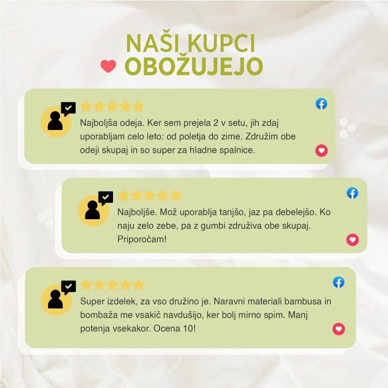 - Tkanina odeje: nebeljen bombaž