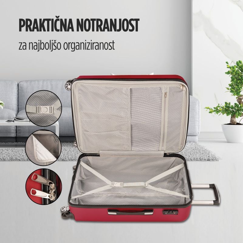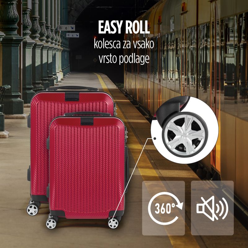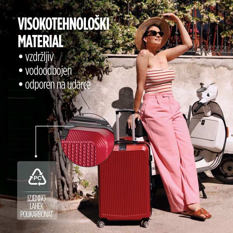 • Popoln univerzalni duo v rdeči barvi za brezskrbna potovanja.